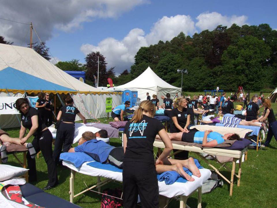 We are always looking for new therapists to join our brilliant nationwide team. So if you want to earn some cash and hone your therapy skills then please join us – we work all over the UK (and even abroad too sometimes). We employ Sports Massage Therapists, Massage Therapists, Physiotherapists and Sports Therapists at our events – there are opportunities for all.